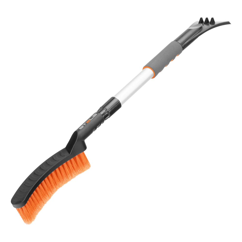 Телескопическая щетка-сметка для снега со скребком Stels 55304 регулируется по длине в диапазоне 73-101 см. Позволяет быстро очистить автомобиль от снега и наледи, раздвижная рукоятка облегчает чистку капота и крыши. Длина рабочей части составляет 20 см, ширина скребка — 11 см. Щетка будет полезна автолюбителям. Преимущества Долговечность — щетка из морозоустойчивого пластика и алюминиевого сплава сохраняет рабочие свойства при температуре до -40 ℃. Высокая эффективность — скребок с зубьями для дробления льда успешно справляется даже с толстым слоем наледи. Аккуратное очищение — плотная щетина, распушенная на концах, эффективно убирает слой снега, не царапая поверхность кузова. Комфортное использование — мягкая неопреновая накладка на рукоятке позволяет держать щетку без перчаток.