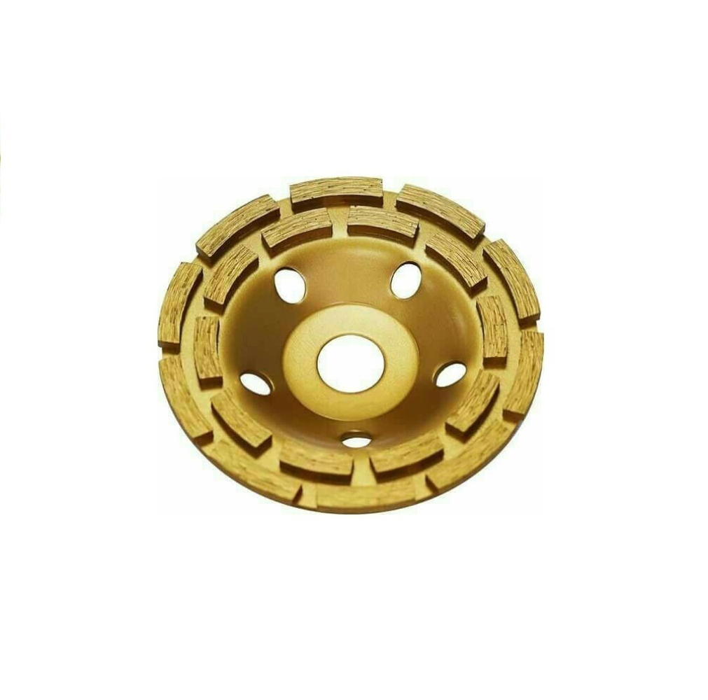 Предназначена для шлифования поверхностей из гранита, бетона, природного и искусственного камня. Чашка выполнена из металлического сбалансированного корпуса, на котором прикреплены алмазные сегменты. Характеризуется более продолжительным ресурсом работы по сравнению с однорядной чашкой. Рабочая поверхность не требует дополнительного водяного охлаждения.