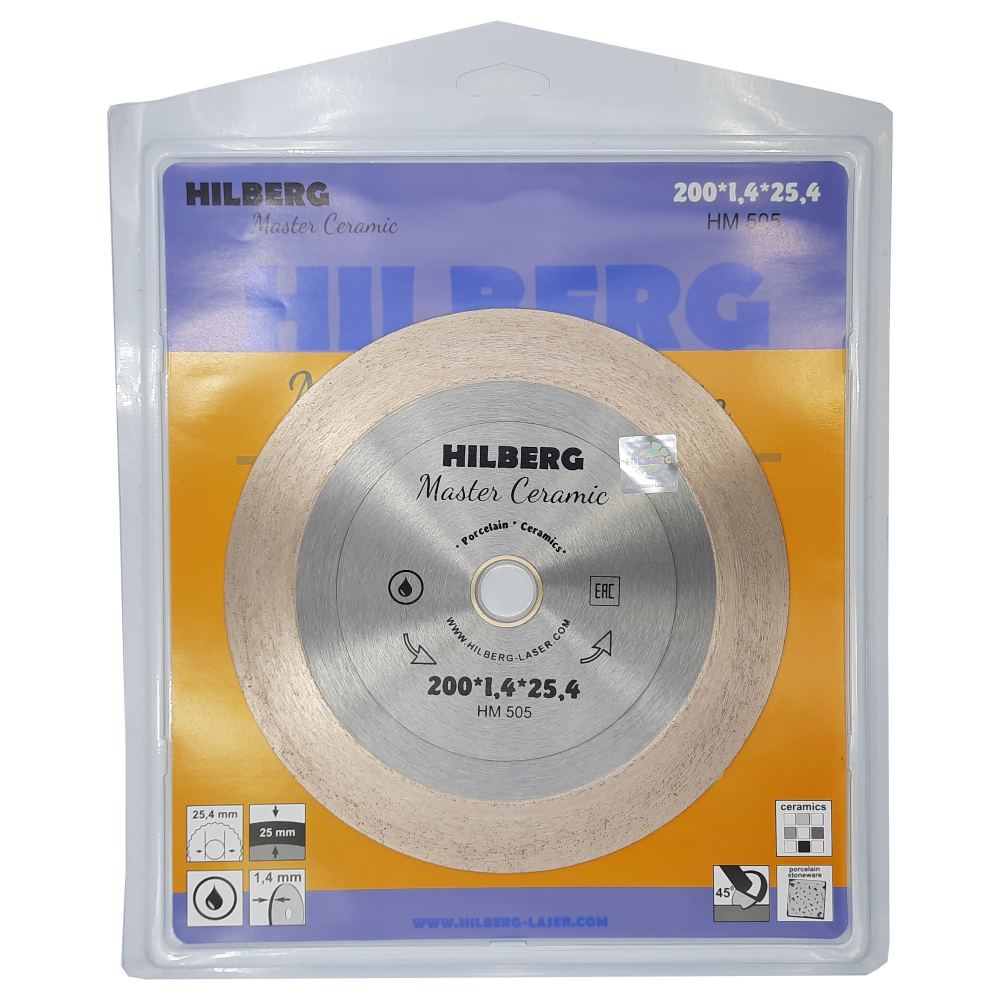 Диск алмазный отрезной 200*25,4 Hilberg Master Сeramic HM505
