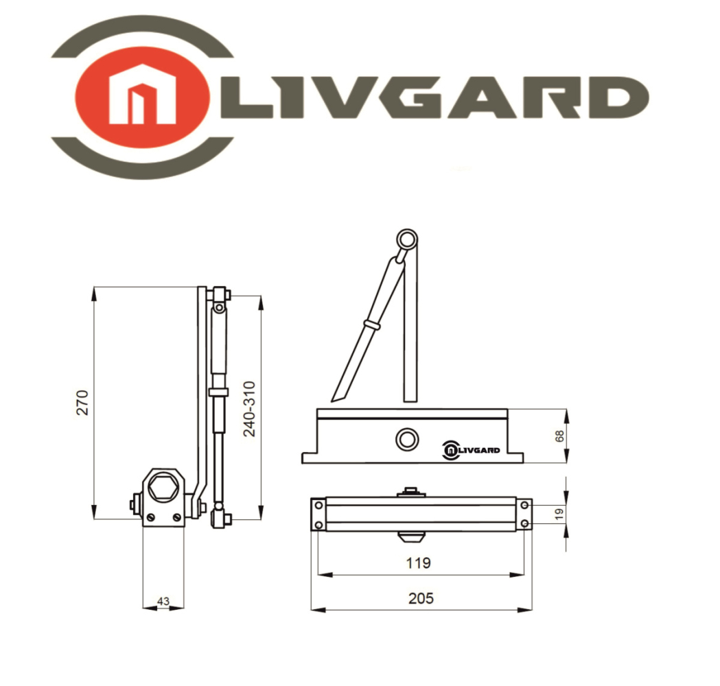 Дверной доводчик предназначен для установки на двери, весом до 120 кг. Имеет две отдельные регулировки: дохлопа двери и скорости ее закрывания. Ресурс открывания/закрывания более 300 000 циклов. Выдерживает температурный режим -45/+60°С. Угол открывания двери до 160 °. Комплектуется набором крепежа и подробной инструкцией по установке. В корпусе установлена специальная двойная пружина, которая позволяет увеличивать весовую нагрузку на доводчик.