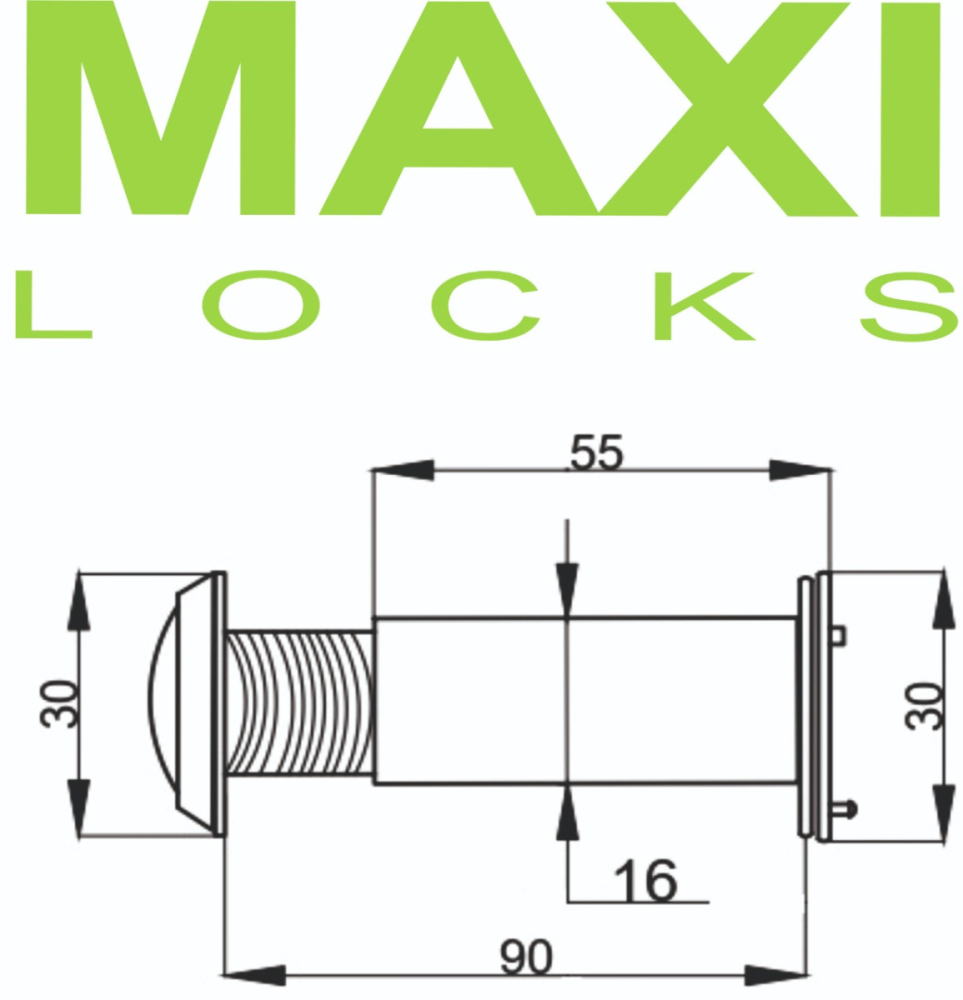 Дверной глазок предназначен для установки в двери толщиной от 55 мм до 90 мм.