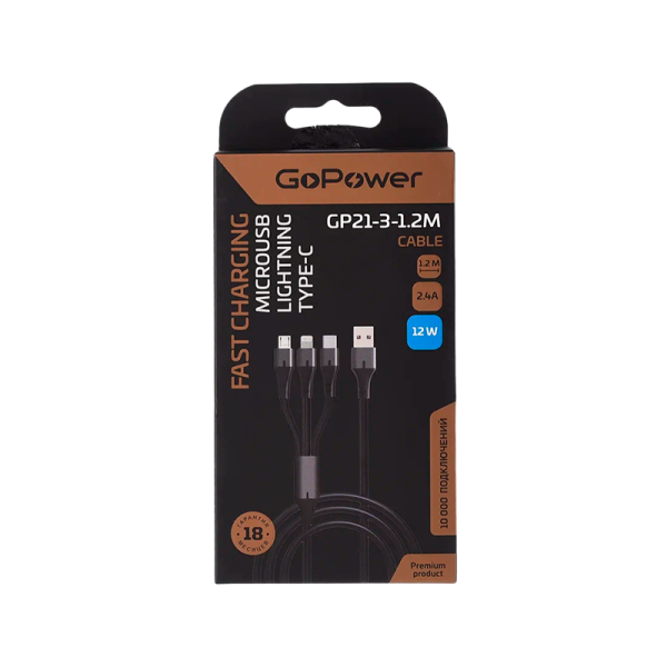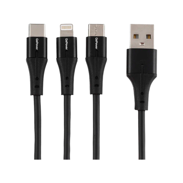 Кабель GoPower GP21-3-1.2M USB (m)-Type-C/Lightning/microUSB (m) 1.2м черный