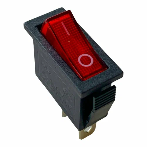 Выключатель клавишный 250V 15А (3с) ON-OFF красный с подсветкой предназначен для коммутации электрических цепей переменного тока напряжением до 250В. Клавишные (Рокерные) выключатели применяются в качестве комплектующих изделий различного электрооборудования (в сетевых фильтрах и удлинителях, аудио-оборудовании, блоках питания, электроустановках на различных производствах и многих других местах). Такой клавишный переключатель имеет два положения. Принцип действия основан на перемещении клавиши в одну из позиций. Для переключения в нужное положение требуется приложить некоторые усилия на клавишу. Монтаж осуществляется без применения винтов на плоских панелях толщиной от 0.8мм до 3мм. Подключение контактов осуществляется плоской клеммой 6.6мм либо с помощью пайки.