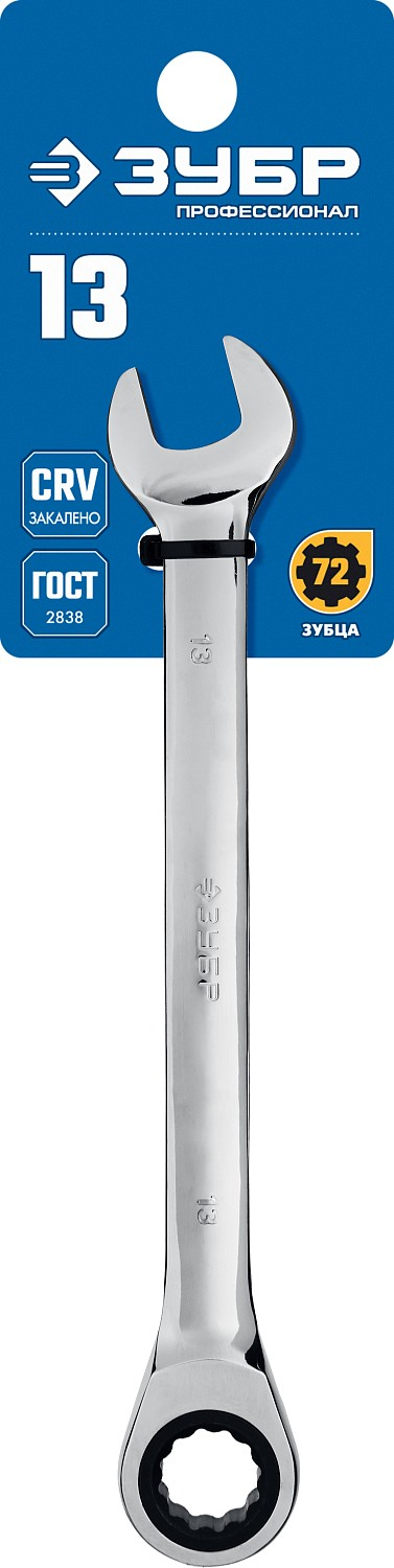 Комбинированный трещоточный гаечный ключ ЗУБР 13 мм, Профессионал 27074-13