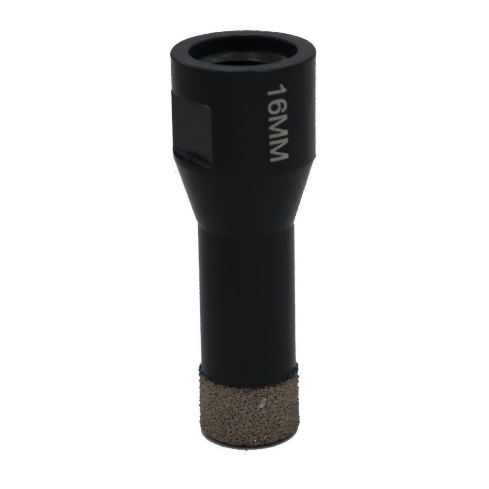 - Применяется для сверления в самых твёрдых материалах таких как керамогранит, фарфор, черепица, мрамор, сланцевые шифер. Технология производства, вакуумная пайка алмазной крошки.