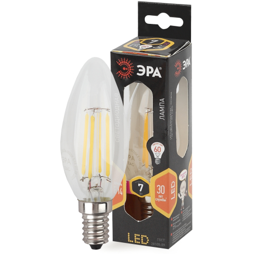 Лампа светодиодная ЭРА F-LED B35-7W-827-E14 7Вт филамент свеча теплый белый свет Е14