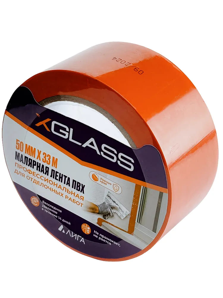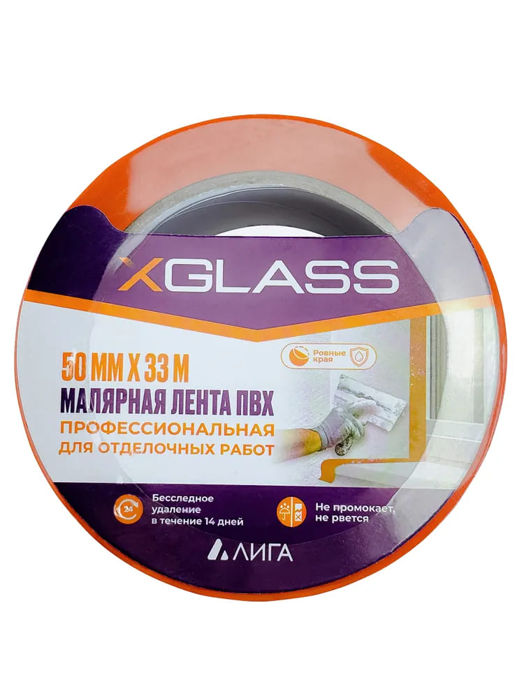 Лента клейкая малярная (ПВХ) X-GLASS 50мм х 33м. оранжевая