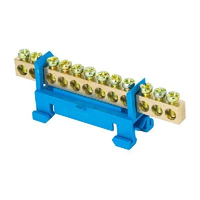 Нулевая шина на DIN (Дин) рейку 12/1 малая синяя изоляция