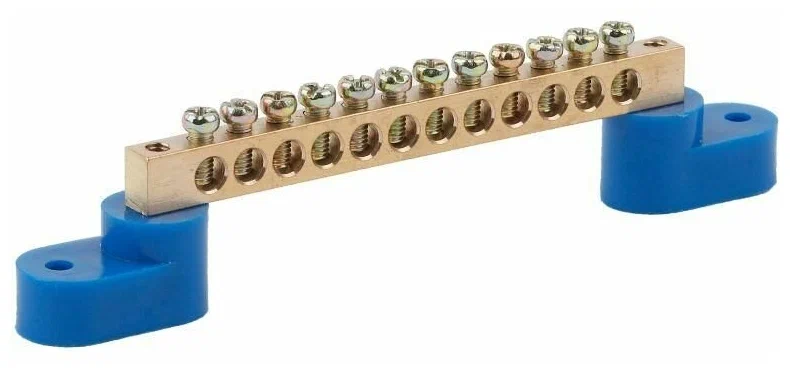 Нулевая шина на 2-х угловых изоляторах 12/2 синяя изоляция