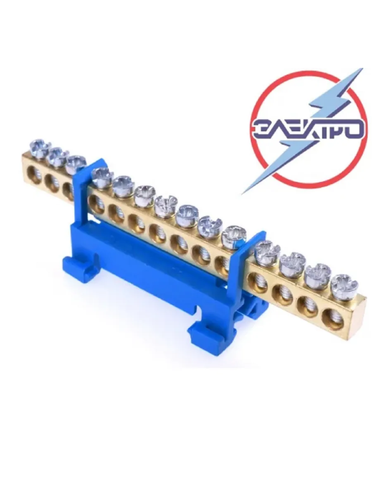 Нулевая шина на DIN (Дин) рейку 14/1 малая синяя изоляция
