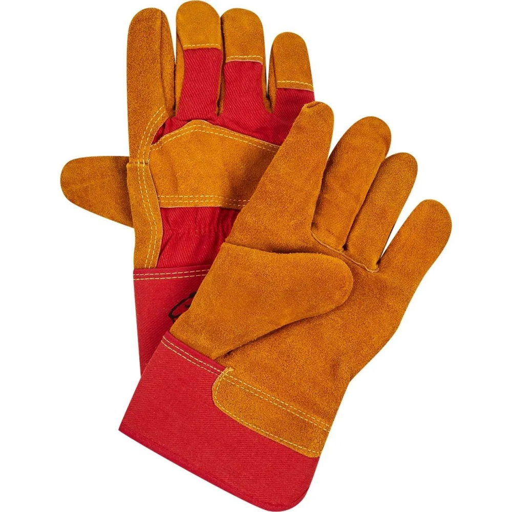 Перчатки спилковые комбинированные, желтый/красный
