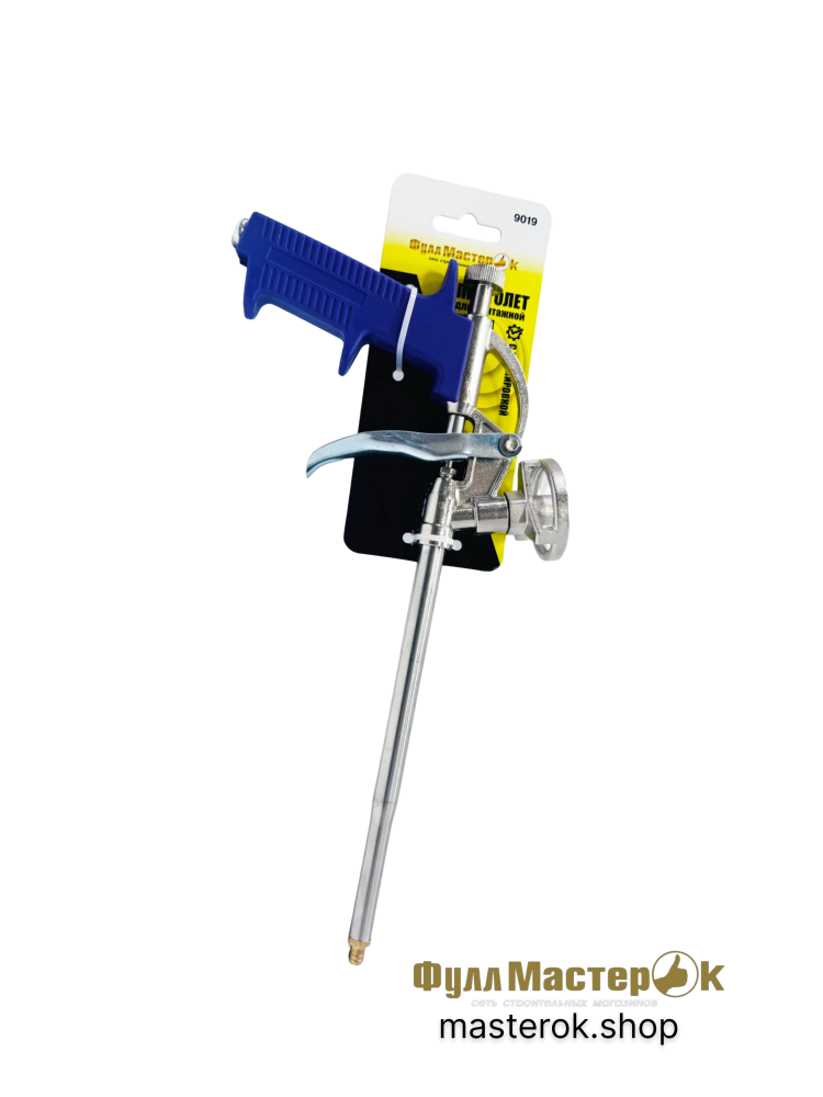 Пистолет для монтажной пены металлический 9019 предназначен для герметизации стыков и щелей во время ремонтных работ.
