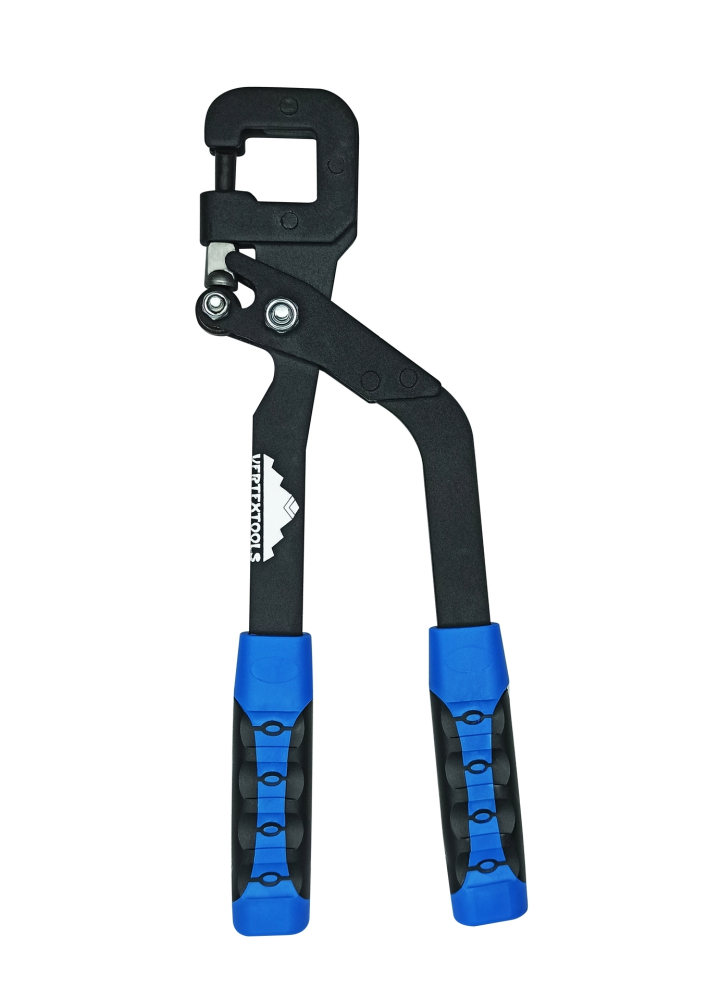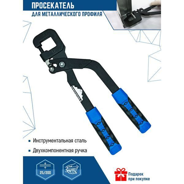 Наборная, усиленная конструкция. Для быстрого крепления металлических профилей при монтаже каркаса для гипсокартонных панелей. Обеспечивает прочное соединение без использования саморезов. Изготовлен из инструментальной стали, двухкомпонентная ручка. Максимальная толщина сшиваемых профилей до 8 мм.