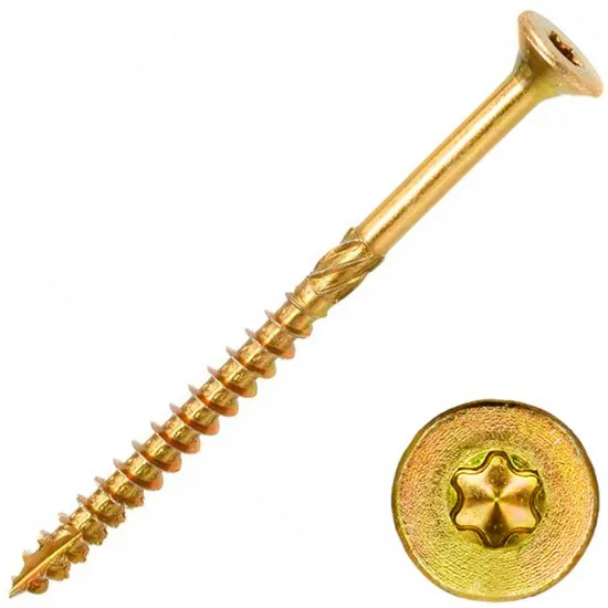 Саморез шуруп конструкционный для дерева 5х100 мм с потайной головкой TORX, желтый цинк