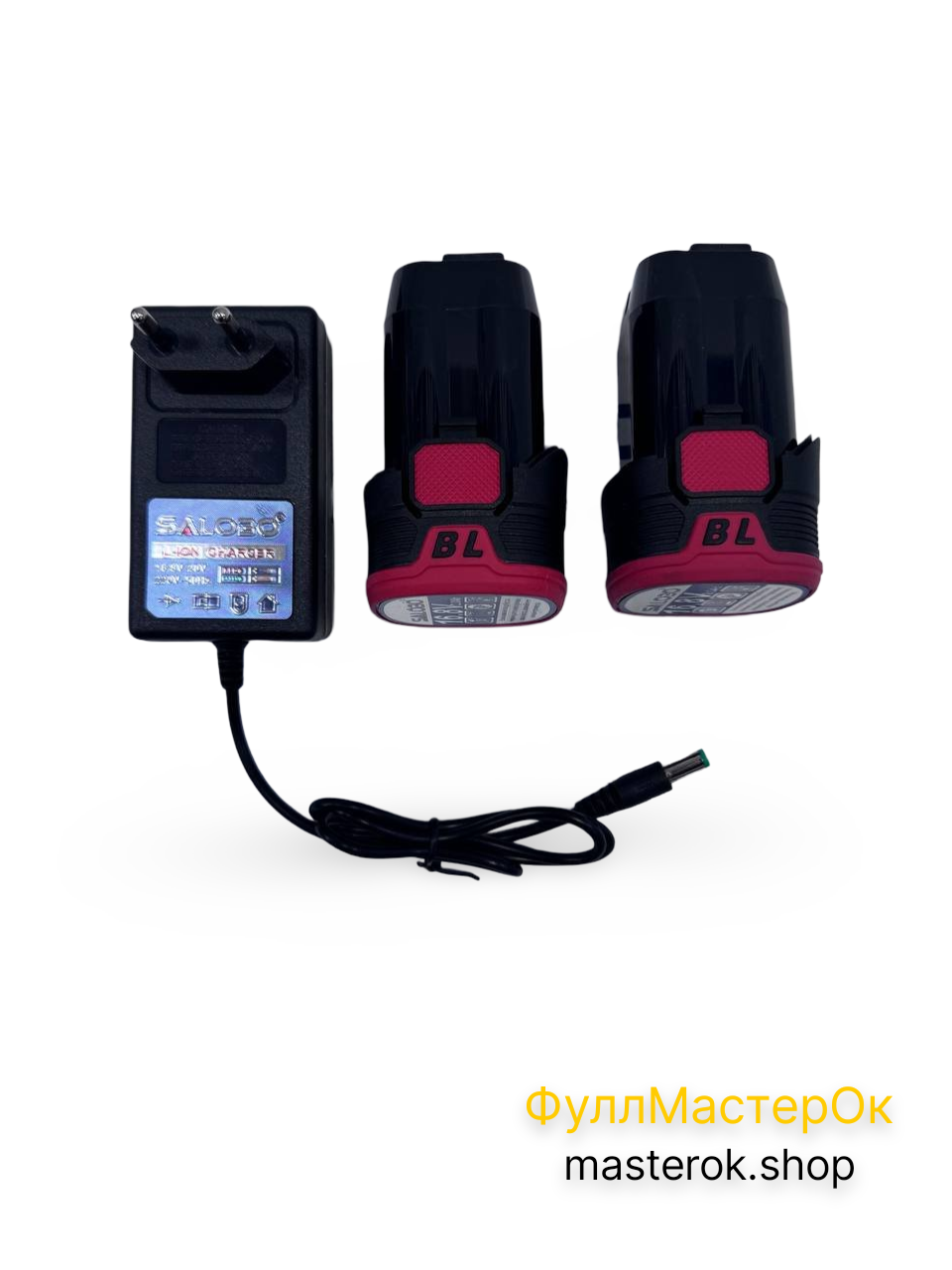В комплект входят два аккумулятора повышенной ёмкости 2 А·ч и напряжением 16,8 В, зарядное устройство и удобная сумка для хранения и переноски инструмента.