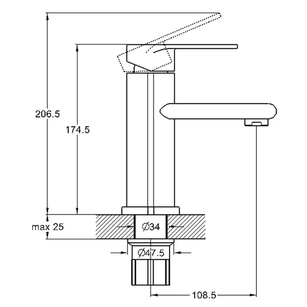 Смеситель для раковины G.Lauf NOB1-A128 изготовлен из латуни. Имеет фиксированный традиционный излив, устанавливается на раковину. Тип управления: рычажное, цвет хром