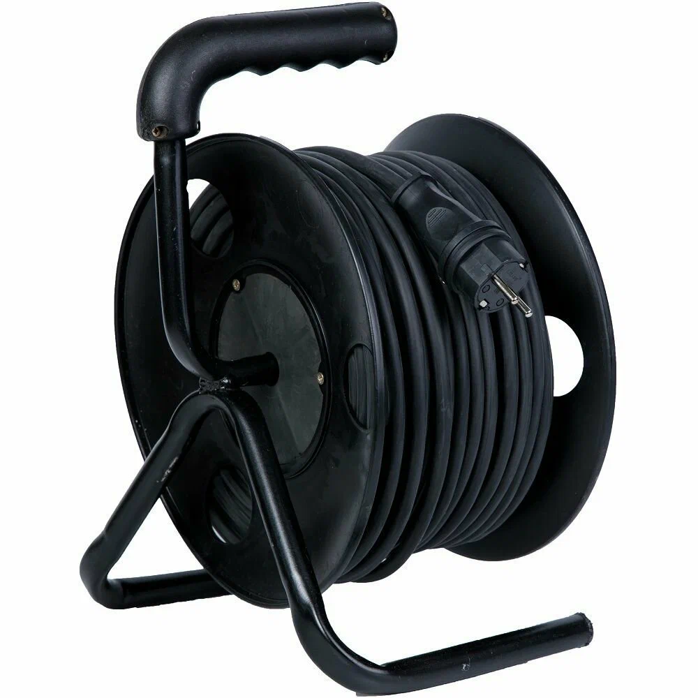 Удлинитель на катушке ПВС 2x2.5 представляет собой катушку из пластика диаметром 240 мм с намотанным проводом, оснащенным четырьмя розетками. Катушка - это удобное приспособление для защиты длинного провода от спутывания, его хранения и транспортировки. Удлинитель на катушке используется на строительных площадках, в производственных цехах и бытовых условиях, позволяет присоединить несколько электрических приборов одновременно. Удлинитель на катушке необходим там, где осуществляется работа с электрическим оборудованием, находящимся на большом расстоянии от сети электропитания. На корпусе катушки располагается устойчивая подставка и специальная рукоятка для удобства переноски удлинителя.