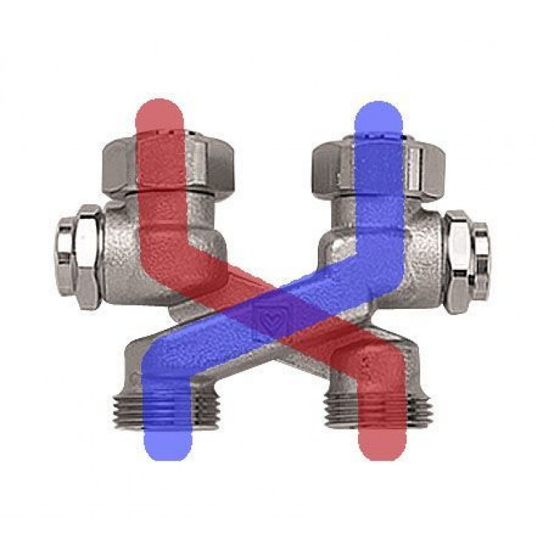 Узел (мультифлекс) перекрестие Х-образное нижнего подключения радиатора прямой с ниппелем