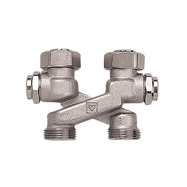 - Особенности Состоит из двух отдельных элементов с запорными вентилями Межцентровое расстояние 50 мм Подключение к радиатору накидная гайка G3/4" металл-металл. Наружная резьба со стороны трубы для фитингов G 3/4", присоединение евроконус. Материал - никелированная латунь