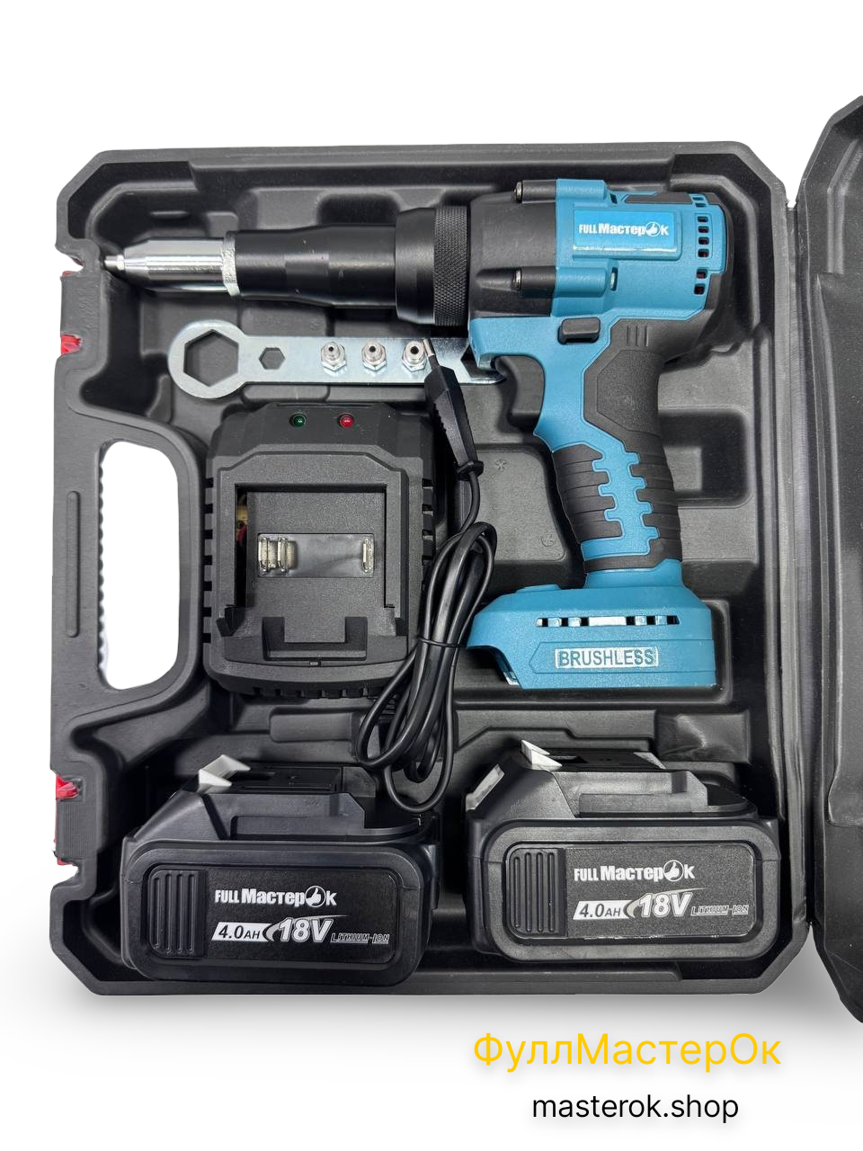 Заклепочник МастерОк 18V аккумуляторный используется бесщеточный двигатель, который не только безопасен и удобен, но также повышает эффективность и продлевает срок службы. Конструкция с несколькими отверстиями для отвода тепла гарантирует, что инструмент не нагревается после длительного использования, предотвращает перегрузку и обеспечивает долговечность и надежность.
