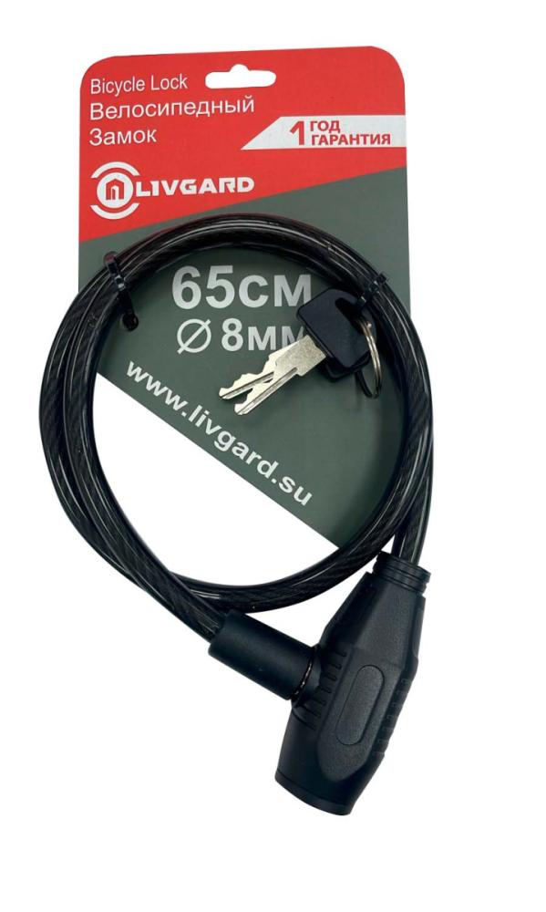 Трос покрыт полимерным материалом для во избежание царапин охраняемого объекта.Диаметр троса - 8 мм, длина троса - 650 мм. Комплектуется 2-мя рамочными ключами.